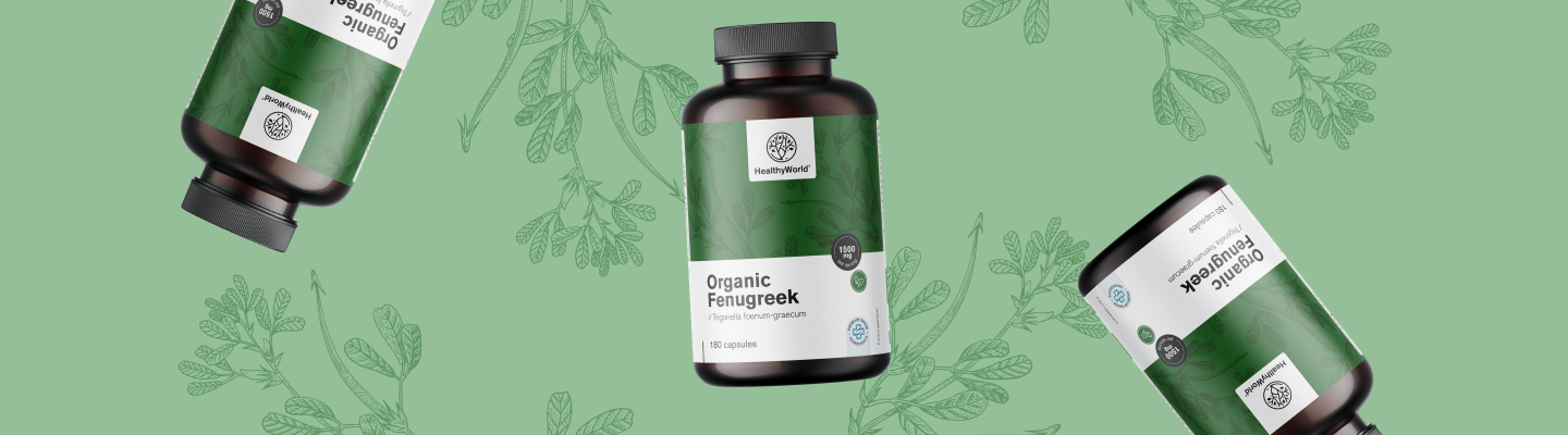 Složení: pískavice řecké seno* (Trigonella foenum-graecum) v prášku, hydroxypropylmethylcelulóza (HPMC; obal rostlinné kapsle). *Z certifikované ekologické produkce. SI-EKO-001. Zemědělství mimo EU.