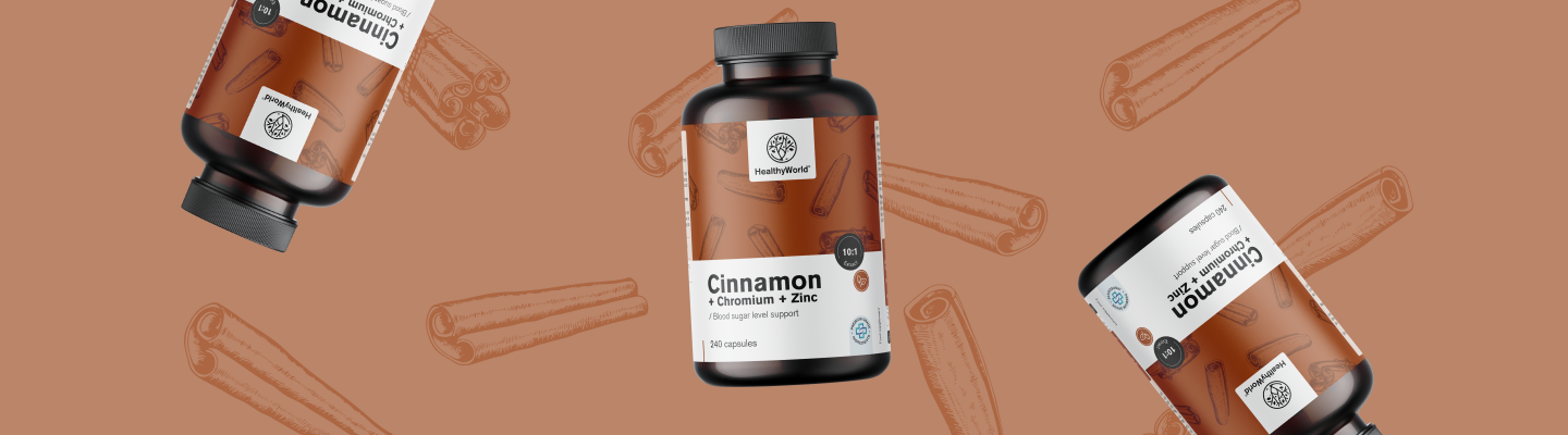 Složení: výtažek z cejlonské skořice (Cinnamomum zeylanicum) 10:1, mikrokrystalická celulóza (plnivo), hydroxypropylmethylcelulóza (HPMC; rostlinný obal kapsle), glukonát zinečnatý, stearát hořečnatý (protispékavá látka), pikolinát chromitý.