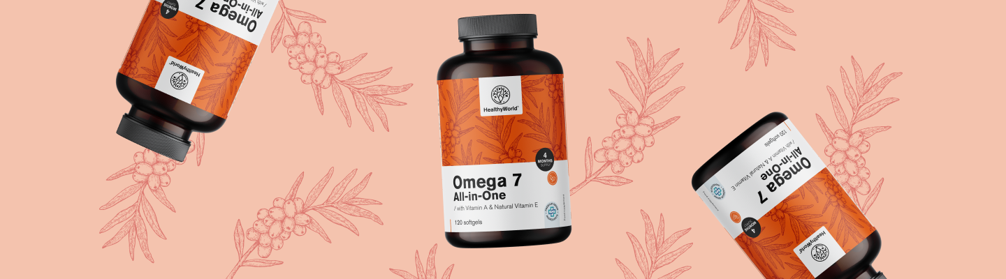 Kapsle Omega-7 All-in-One kombinují 4 pečlivě vybrané mastné kyseliny: